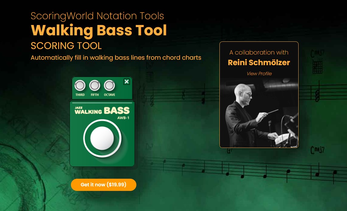 “The Jazz walking bass plug-in generates nice and convenient bass lines, is a real time-saver for workflow and is very helpful to bounce audio demos directly from Sibelius.