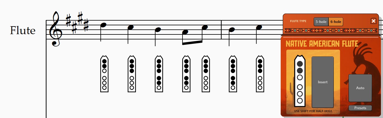 Through our Custom Tool Program, we created the Graphical Native American Flute Tool, which lets you set fingerings quickly and intuitively. With just one click, the chart is inserted directly into the score.