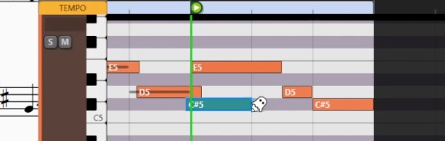 For example, to play Middle C (note 60) at a velocity of 100, add the text: ~N60,100