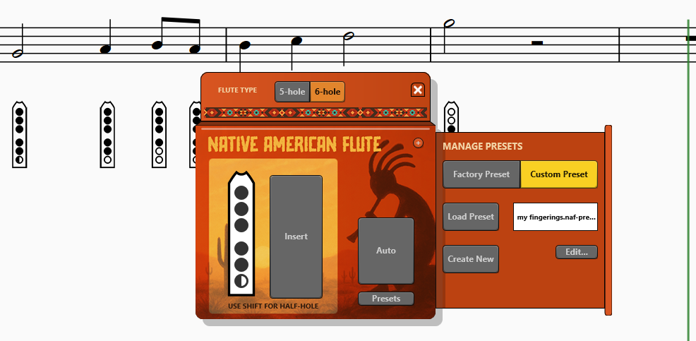 Created in Collaboration with Tim Land, a passionate flute composer and player from California, the tool allows the creation of standard fingering charts, often used in conjunction with the widely adopted Nakai Notation.